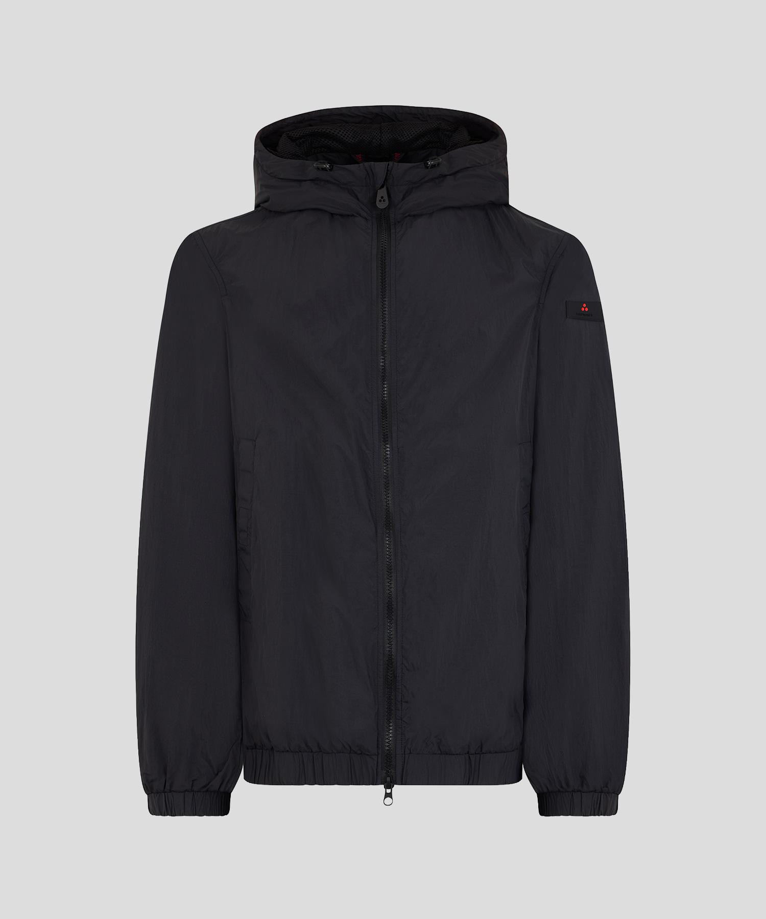 Nigle U C1 windbreaker van Peuterey in het zwart. Deze jas is gemaakt van een nylon canvas met een gekreukte structuur, ontstaan door het speciale verf- en afwerkingsproces. De jas heeft een zwarte ritssluiting met dubbele slider over de hele lengte, een vaste capuchon met trekkoorden en zijzakken.